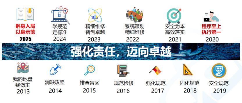 核安全文化必须融入管理体系,不能仅依赖个人自觉。部门通过建立全员核安全责任清单、完善标准化流程、运用数字化工具等方式,推动核安全要求扎实落地。自2013年起,维修四处围绕管理提升,每年选定主题系统推进,覆盖技能、文件、行为、流程等多方面,以体系化、常态化的运作机制,保障核安全主体责任层层落实、持续巩固。