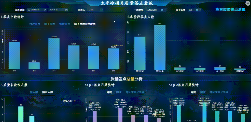 项目部积极借力数字化技术为基层松绑,以“业务+IT”融合的研发模式,在传统的自动化清单+协同化平台+组合式看板+移动APP的基础上,增加可视化看板和BIM+数字化等技术,升级改造智慧决策系统,构建项目数字大脑,为全员提供科技赋能平台。