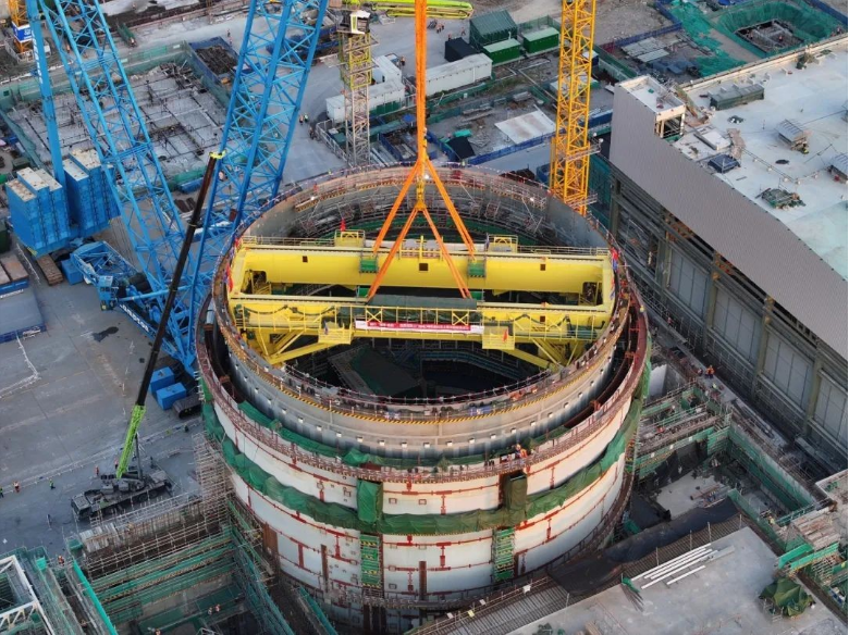 3号机组环吊是钢制安全壳(CV)顶封头吊装前最后一个引入反应堆厂房的重要设备,标志着3号机组反应堆厂房已具备顶封头吊装条件,为3号机组CV顶封头吊装就位奠定了坚实的基础。