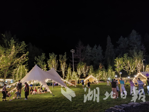 据悉,长岭岗森林覆盖率高达95%,夏季平均气温仅21-26℃,堪称湖北的“天然空调房”。游客可乘具有复古特色的森林小火车,缓缓穿行于广袤林海。滑雪场草坪上,游客们可在露营天幕下畅聊人生,也可以在篝火晚会结交朋友,在趣味互动中放松心情。