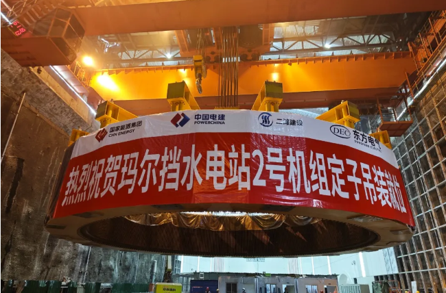 6月24日,玛尔挡水电站2号机组定子顺利吊装就位,为实现电站2024年全部机组投产目标奠定坚实基础。