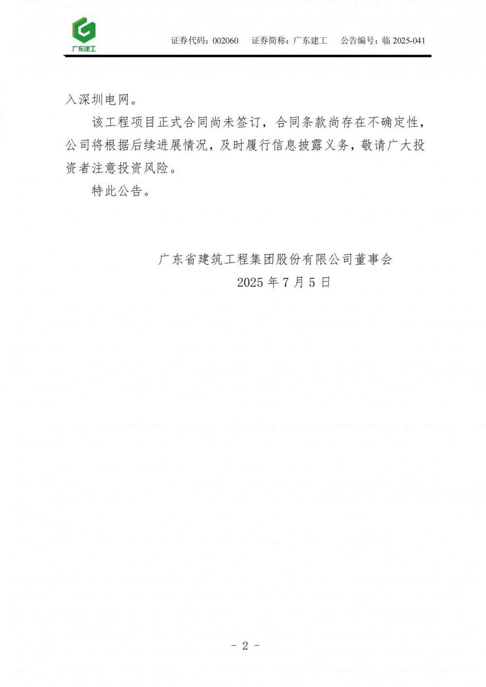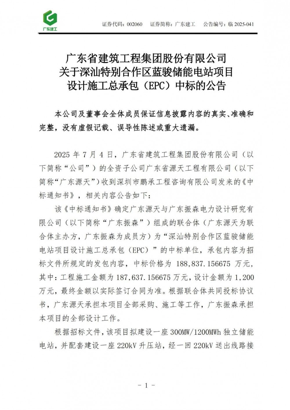 7月4日,广东建工发布公告称,公司的全资子公司广东省源天工程有限公司(以下简称“广东源天”)收到深圳市鹏承工程咨询有限公司发来的《中标通知书》,相关内容公告如下: