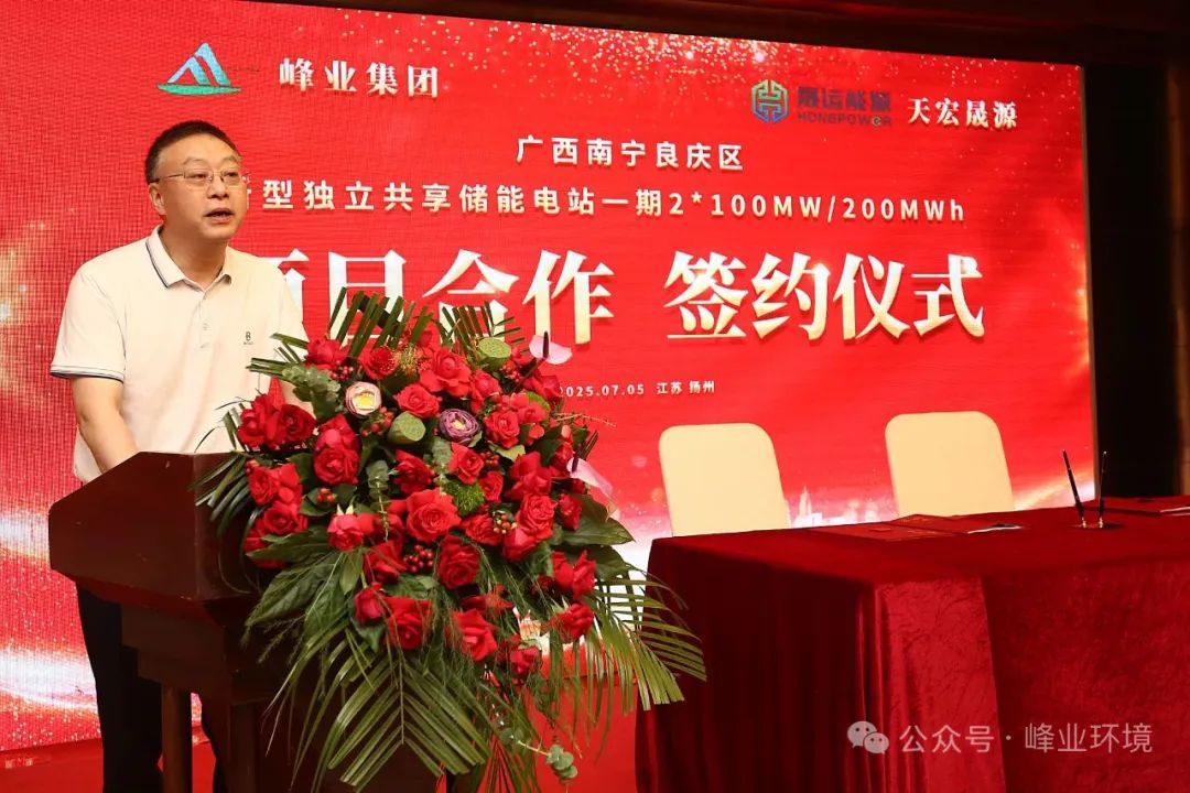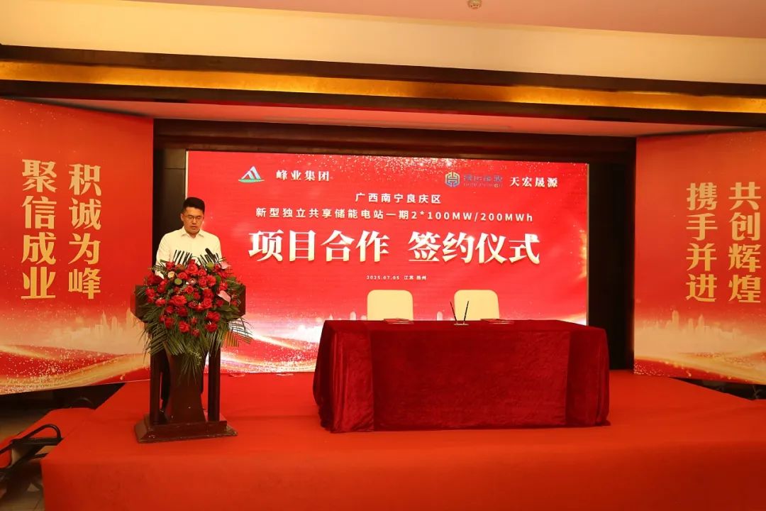 7月5日上午,扬州迎宾馆贵芳园会议厅内气氛热烈、嘉宾云集,晟运储能与江苏峰业集团在此隆重举行 “广西南宁良庆区新型独立共享储能电站一期2*100MW/200MWh” 项目签约仪式。