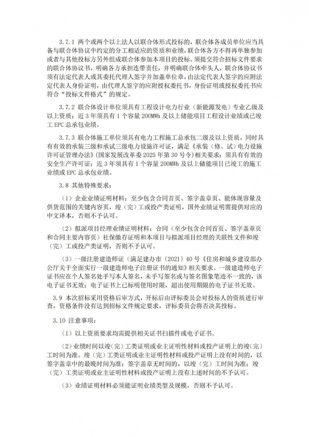 要求近3年(2022年1月1日至投标截止日)投标人须具有1个容量200MWh及以上储能项目已竣工EPC总承包业绩。