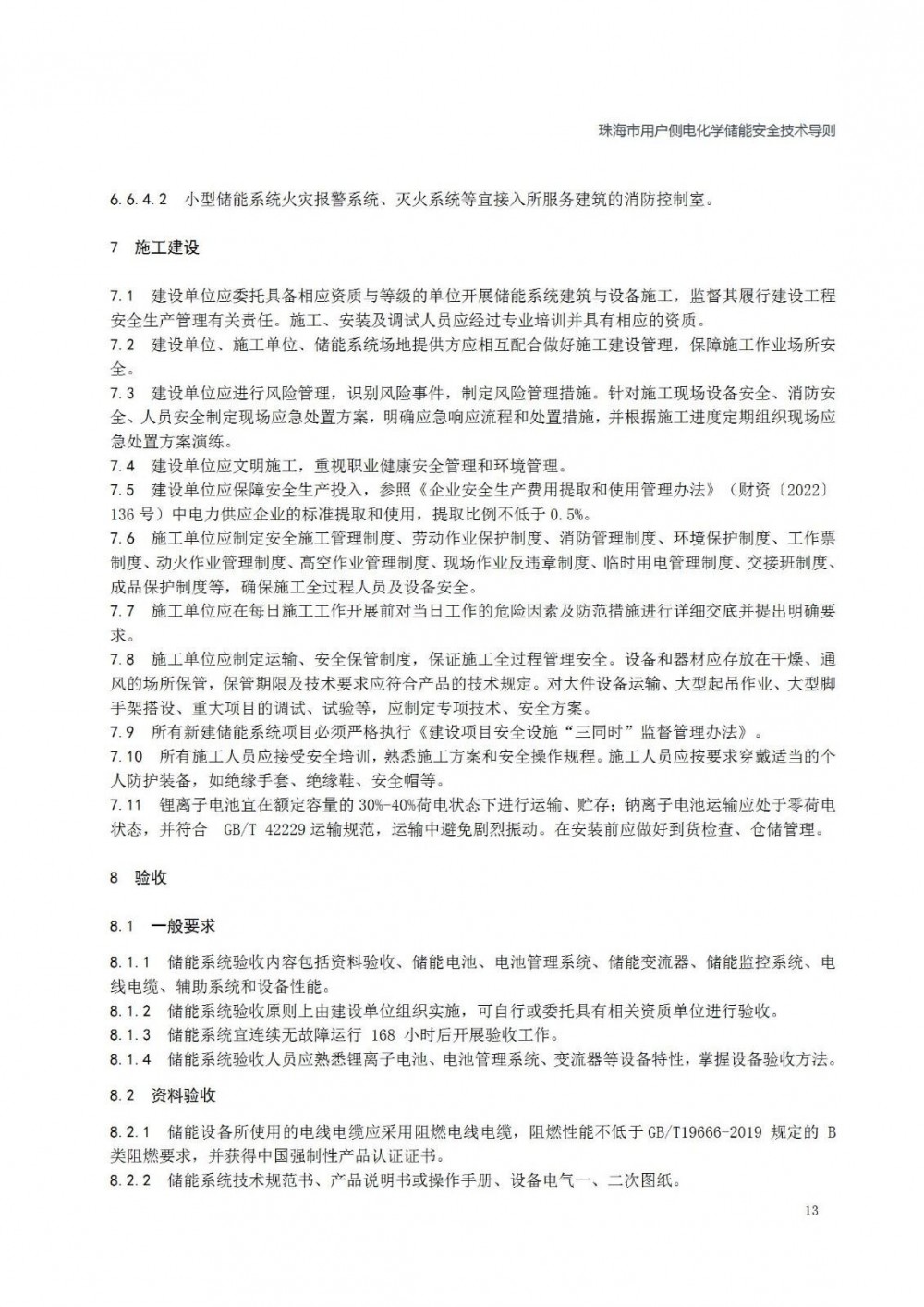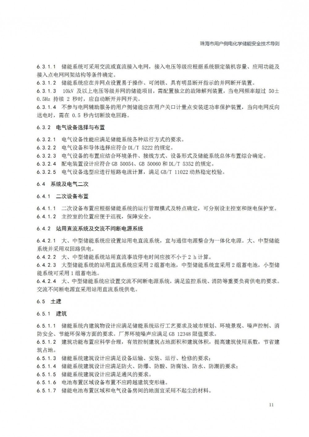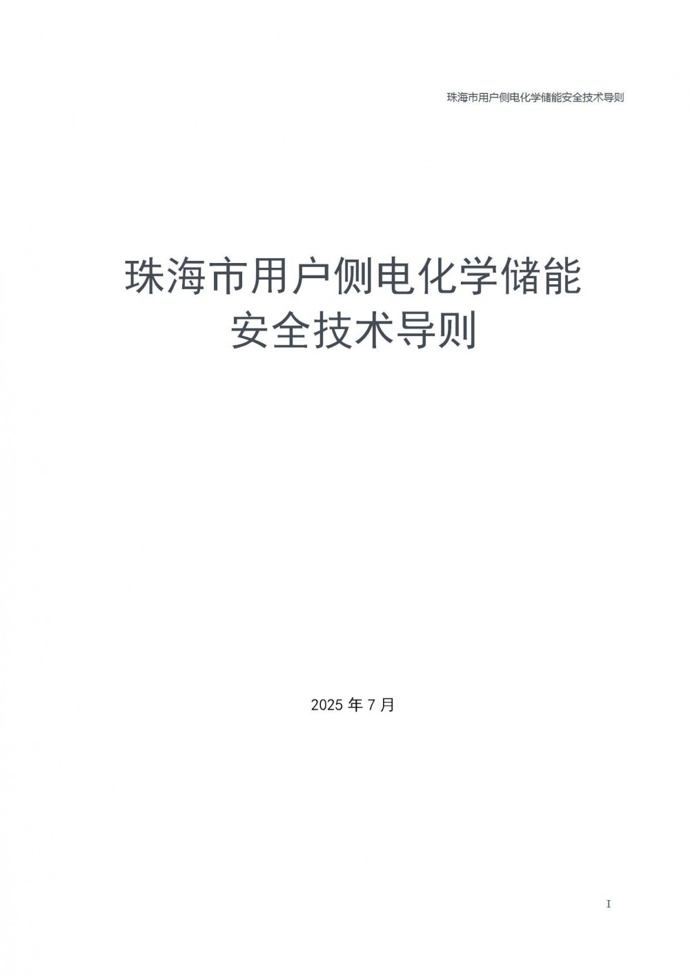 在珠海市辖区内建设的用户侧电化学储能,原则上要依照本《技术导则》实施,确保安全。