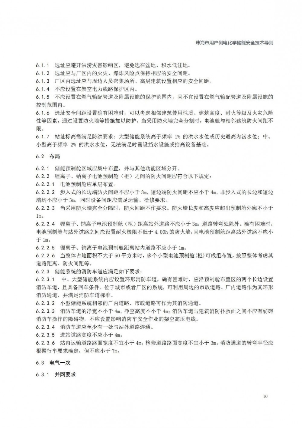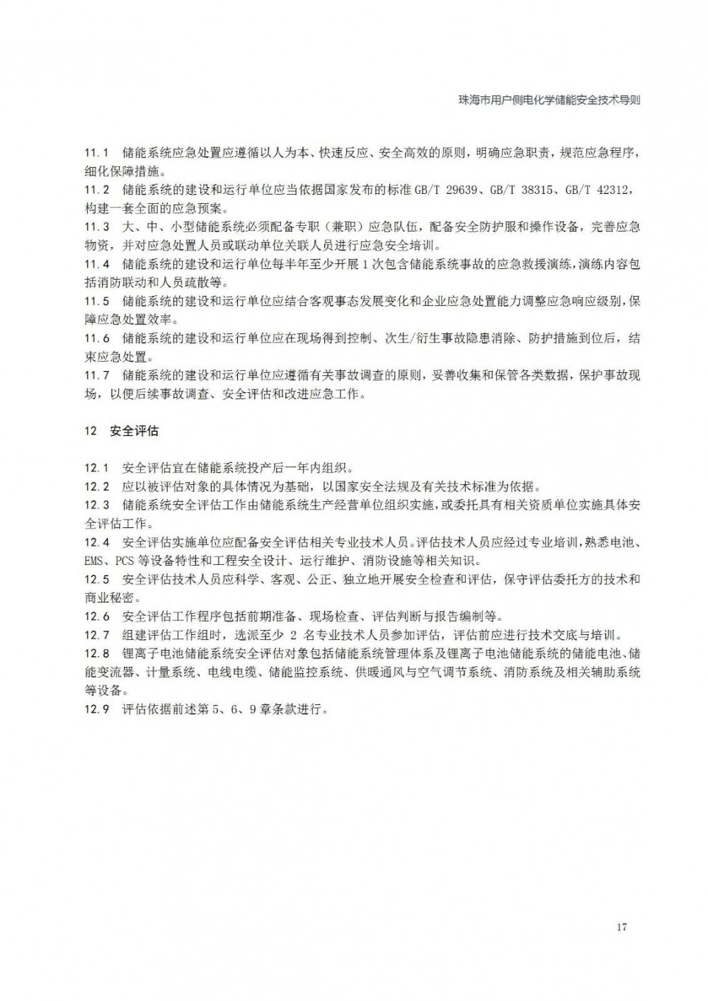 本《珠海市用户侧电化学储能安全技术导则》涵盖十个关键部分,具体包括: