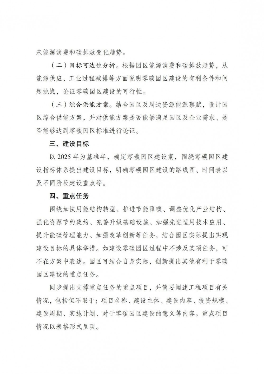 为贯彻落实党中央、国务院决策部署,积极稳妥推进碳达峰碳中和,加快经济社会发展全面绿色转型,支持有条件的地区率先建成一批零碳园区,逐步完善相关规划设计、技术装备、商业模式和管理规范,有计划、分步骤推进各类园区低碳化零碳化改造,助力园区和企业减碳增效,为实现碳达峰碳中和目标提供坚实有力支撑。现就零碳园区建设有关事项通知如下: