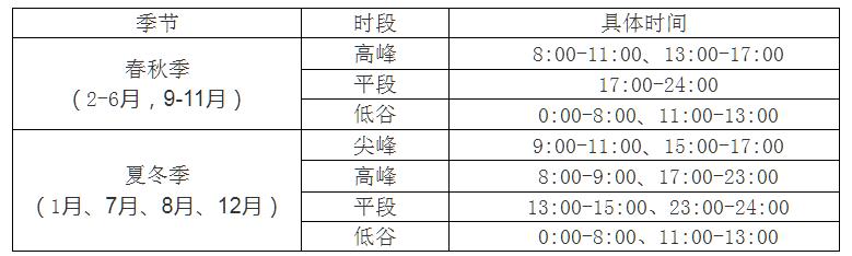 工商业用户峰谷时段划分(旧)