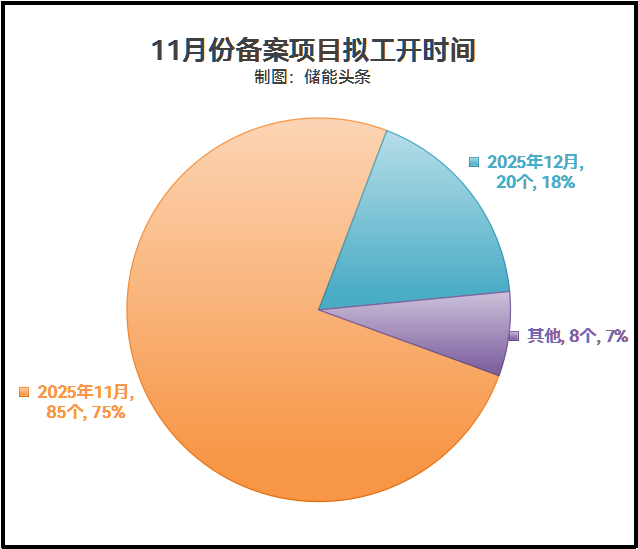 备案项目中75%的项目计划在11月份开工,18%的项目计划于12月份开工,其余月份开工的数量占7%。