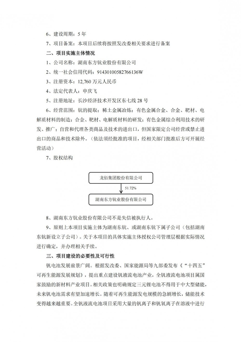 龙佰集团表示,本项目的建设符合国家产业政策,符合行业发展趋势和企业发展战略规划,属于国家鼓励的新材料产业项目,可为当地带来新的经济增长点。同时本项目的实施将使公司拥有了“废副资源提取--氧化钪--铝钪中间合金--新型含钪高性能铝合金铸锭--新型含钪高性能铝合金型材”和“废副资源提取--多钒酸钠--五氧化二钒--钒电池电解液”两条完整的产业链,完善了公司钪、钒产业链,提高公司的竞争力和盈利能力,为公司的快速、持续发展奠定了坚实基础,符合公司的发展战略。
