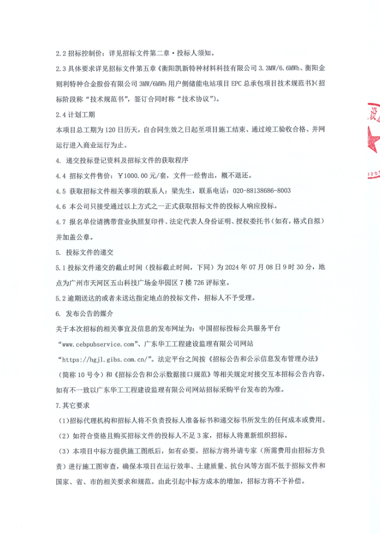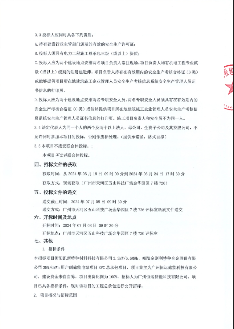 据电力家了解到,6月18日,衡阳凯新特种材料科技有限公司3.3MW/6.6MWh、衡阳金则利特种合金股份有限公司3MW/6MWh用户侧储能电站项目EPC总承包项目招标公告发布,项目招标人为广州恒运储能科技有限公司,项目位于湖南省衡阳市雁峰区。