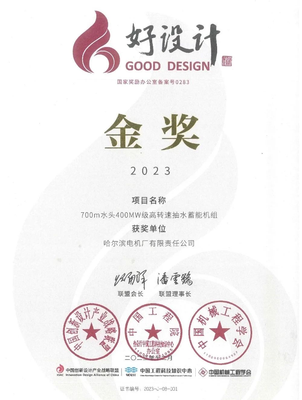 哈电电机承担的黑龙江省重大科技成果转化项目“超高水头400兆瓦级大容量抽水蓄能机组研制”,通过了黑龙江省科技厅组织的专家组验收。项目成果达到国际领先水平,具有完全自主知识产权,成功填补了我国在超高水头、超大容量、高转速抽水蓄能机组设计制造上的空白,为国内后续建设同类电站奠定了坚实技术基础,该项目成功应用于阳江抽水蓄能电站。