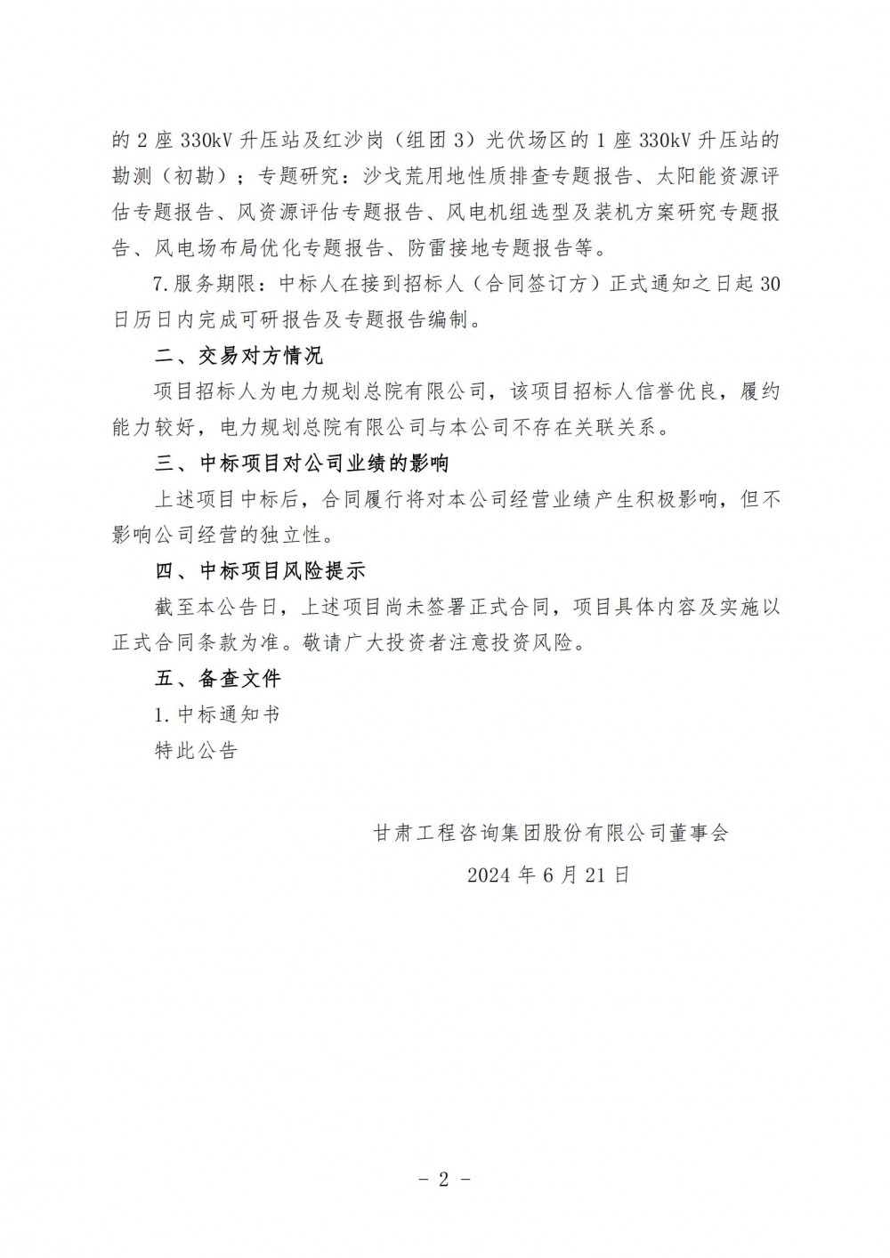 甘咨询表示,上述项目中标后,合同履行将对本公司经营业绩产生积极影响,但不影响公司经营的独立性。
