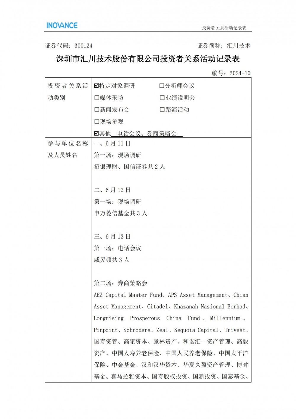 据电力家了解到,6月24日,汇川技术发布消息称,近日汇川技术接受机构调研。