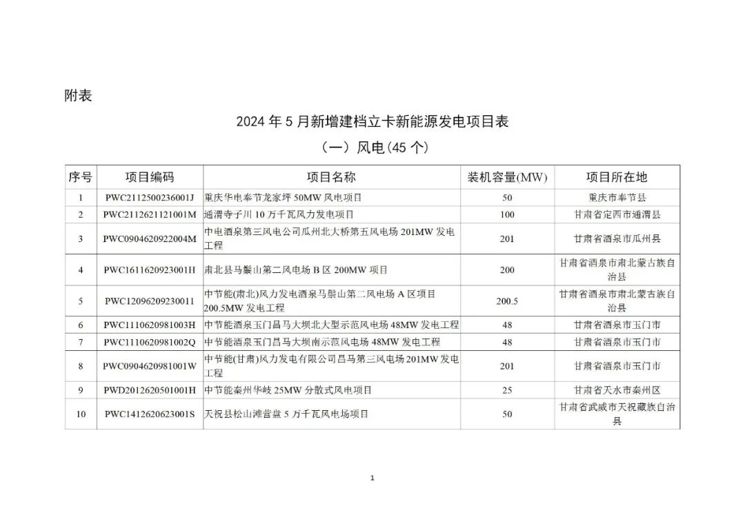 关于2024年5月全国新增建档立卡新能源发电项目情况的公告