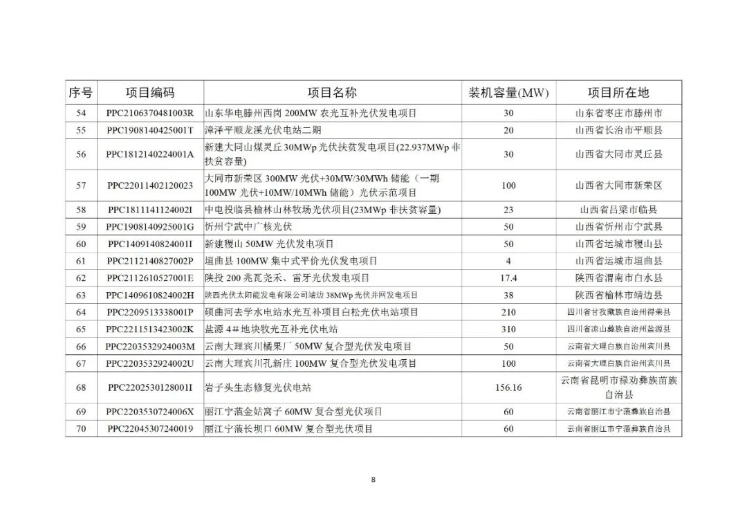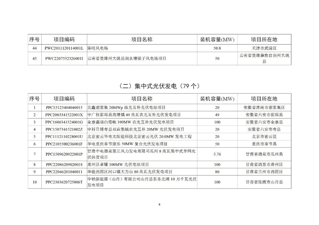 其中风电项目45个共3558.65MW,光伏项目79个共6810.155MW,分布式光伏项目630个共717.918MW,生物质发电项目9个共229.94MW。