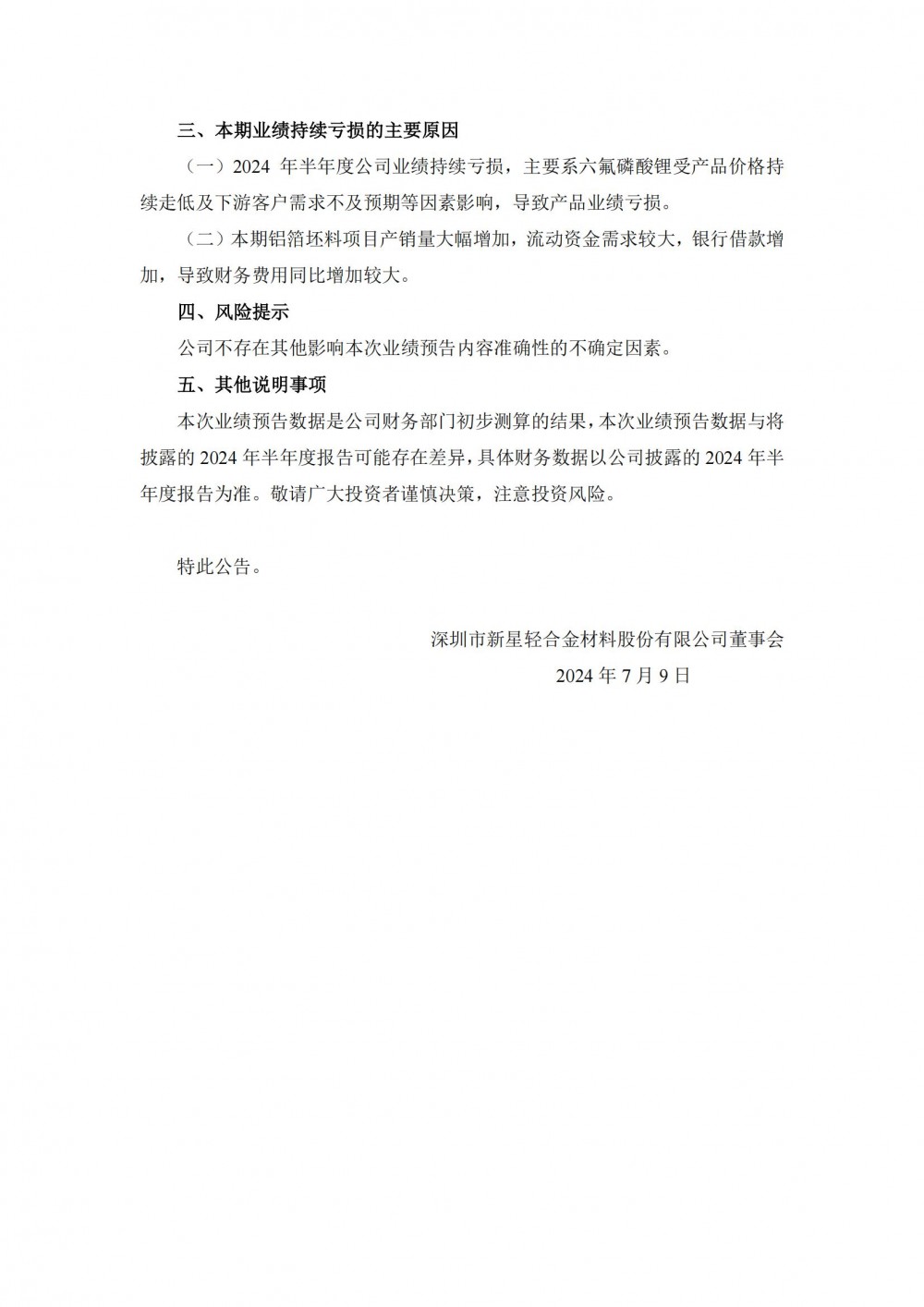 据电力家了解到,7月8日,深圳新星发布公告称,预计2024年半年度实现归属于母公司所有者的净利润为-6500万元到-5500万元,与上年同期相比,亏损增加596.68万元到1596.68万元。