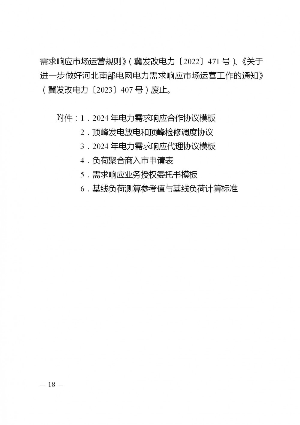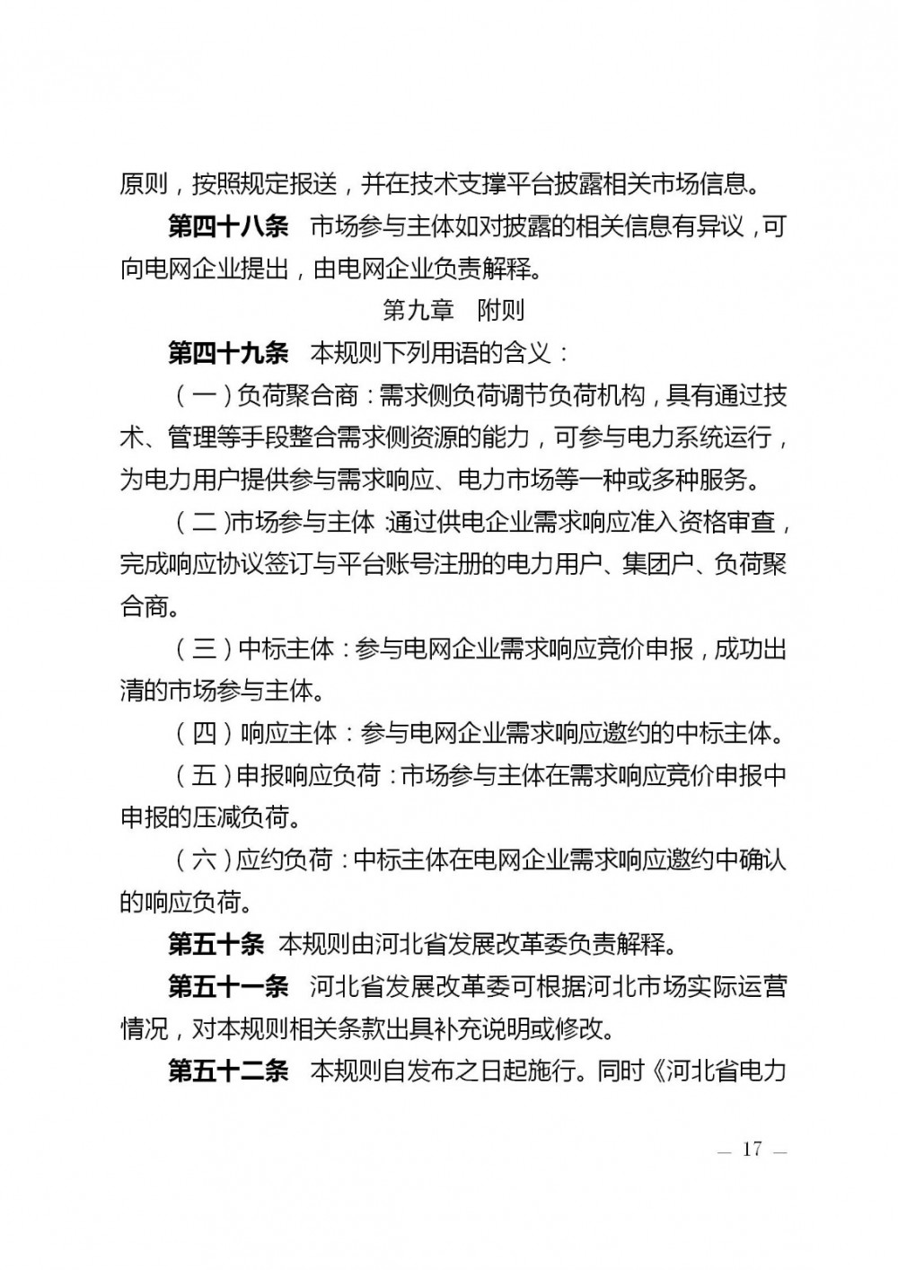 河北省发展和改革委员会关于印发河北省电力需求响应市场运营规则(2024年版)的通知