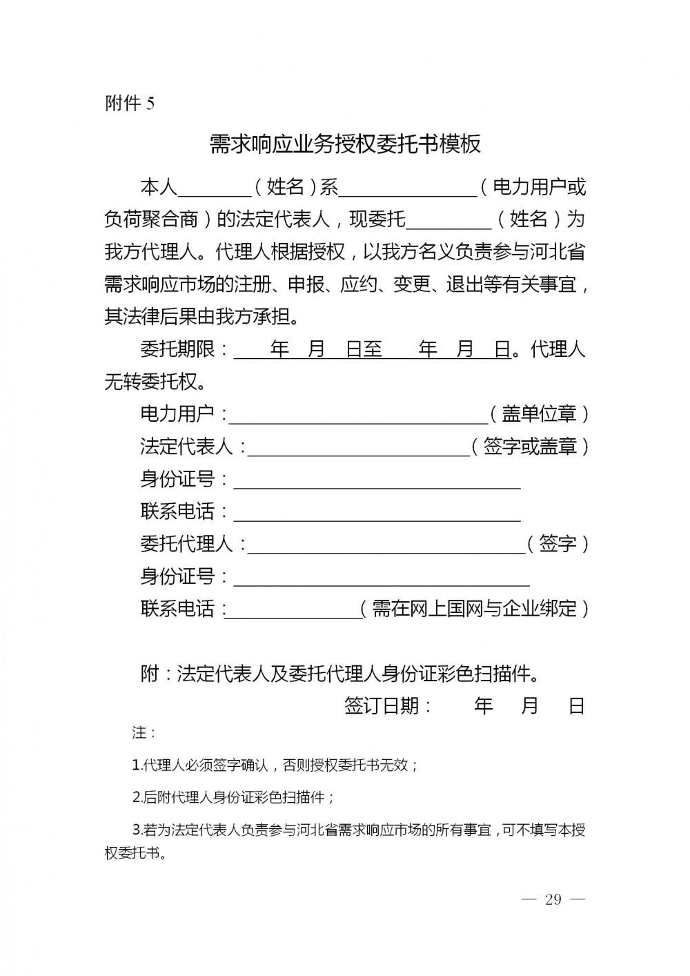 为保障能源电力安全,按照《电力需求侧管理办法(2023年版)》《电力负荷管理办法(2023年版)》等文件要求,我委组织国网河北省电力有限公司、国网冀北电力有限公司,结合我省实际,制定了《河北省电力需求响应市场运营规则(2024年版)》,现印发给你们,请认真贯彻执行。执行中如遇重大问题,请及时报告。
