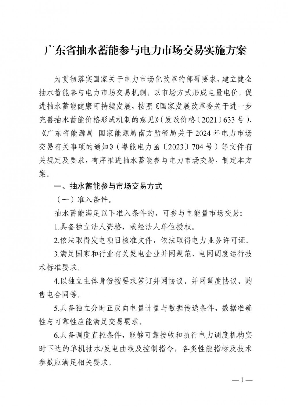 7月10日,广东省能源局、国家能源局南方监管局联合印发《广东省抽水蓄能参与电力市场交易实施方案》。