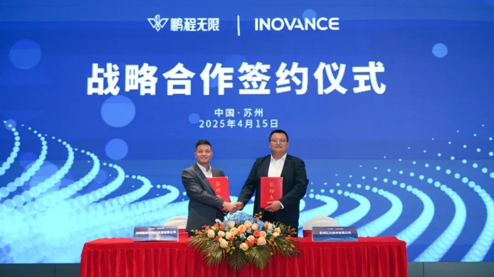 2025年4月15日,苏州汇川技术有限公司(以下简称“汇川技术”)与深圳鹏程无限新能源有限公司(以下简称“鹏程无限”)在苏州正式签署战略合作协议。双方将围绕储能技术研发、市场协同及能源解决方案创新展开深度合作,共同推动新能源产业高质量发展。鹏程无限董事长兼总经理吕建、储能事业部销售总监冯昆鹏、董事长助理关也驰;汇川技术能源重工业总裁郭立鹏、储能BU总经理王晓宇、储能BU销售总监晏耀东、储能BU东南华南销售总监何灿出席签约仪式。
