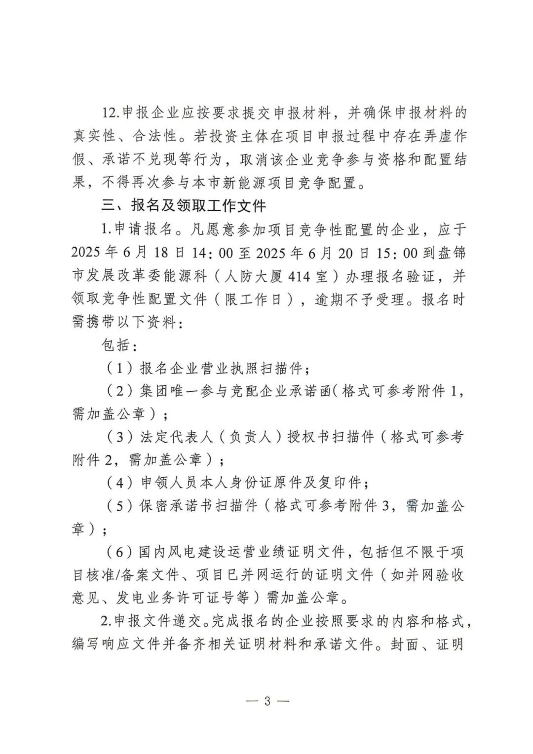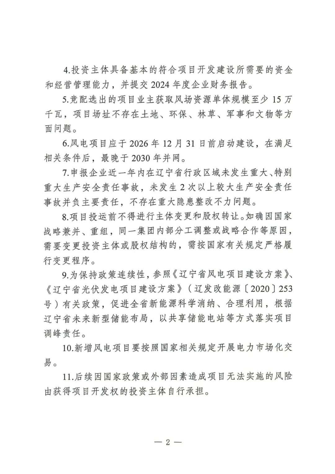 风电项目应于2026年12月31日前启动建设,在满足相关条件后,最晚于2030年并网。