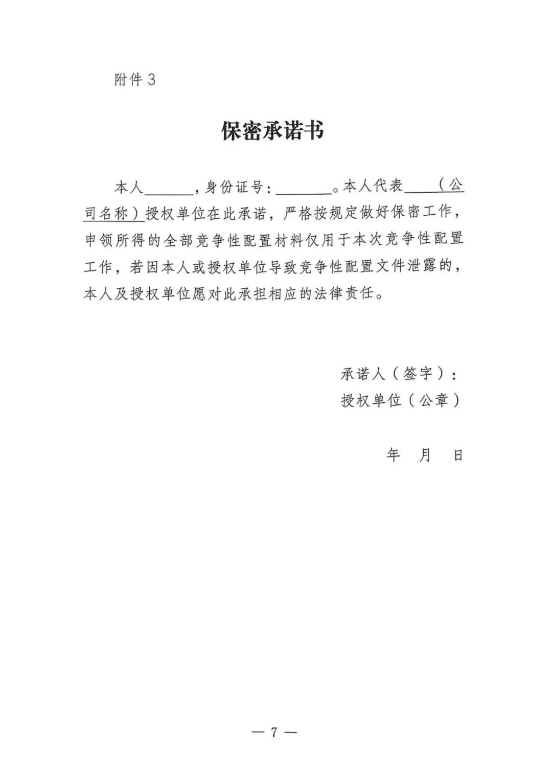 申报要求指出,属于同一集团(一级公司)或者存在控股、管理关系的不同企业不能同时参与本次竞争性配置。以下属公司名义参与本次竞争性配置的须提供集团唯一参与竞配企业承诺函。