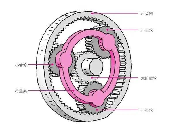 风电齿轮箱通常采用多级齿轮传动结构,主要由输入轴、中间轴、输出轴、齿轮副、箱体和润滑系统等组成。其工作原理并不复杂:风轮带动输入轴低速转动,通过多级齿轮副的啮合传动,逐步提升转速,最终由输出轴以适合发电机发电的高速旋转输出动力。