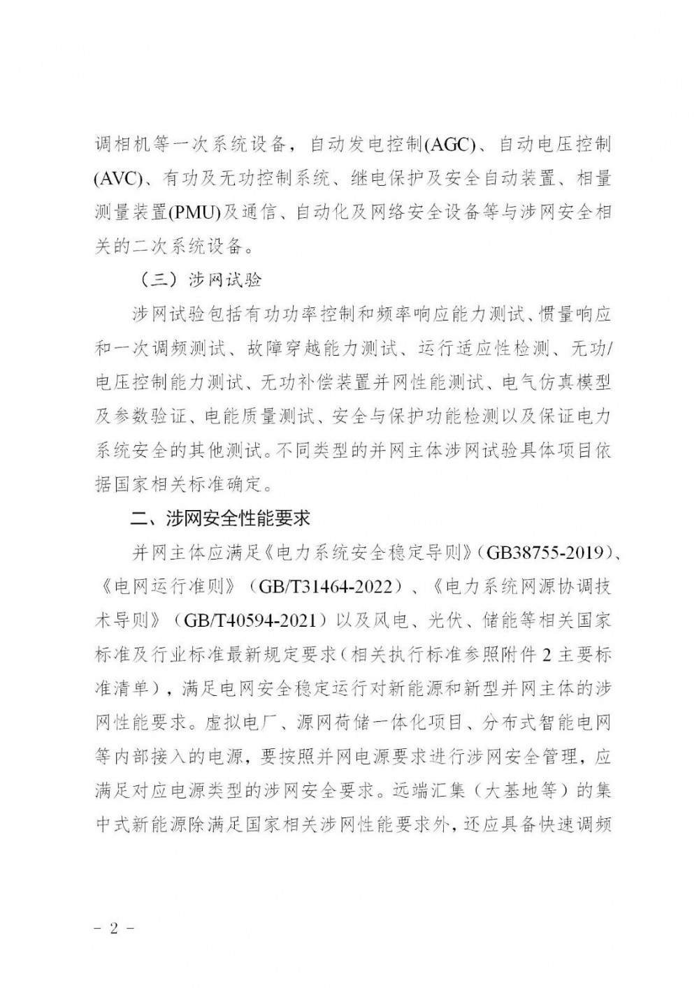 并网主体应满足《电力系统安全稳定导则》(GB38755-2019)、《电网运行准则》(GB/T31464-2022)、《电力系统网源协调技术导则》(GB/T40594-2021)以及风电、光伏、储能等相关国家标准及行业标准最新规定要求(相关执行标准参照附件2主要标准清单),满足电网安全稳定运行对新能源和新型并网主体的涉网性能要求。虚拟电厂、源网荷储一体化项目、分布式智能电网等内部接入的电源,要按照并网电源要求进行涉网安全管理,应满足对应电源类型的涉网安全要求。远端汇集(大基地等)的集中式新能源除满足国家相关涉网性能要求外,还应具备快速调频调压、抑制宽频振荡等支撑能力,必要时配置调相机等装置,防止大规模脱网。