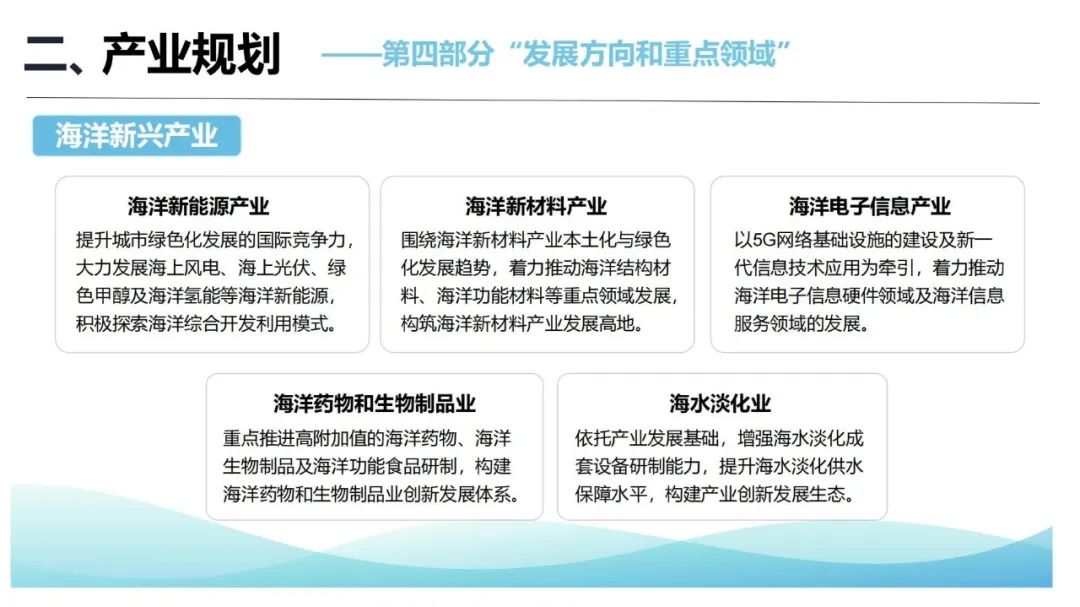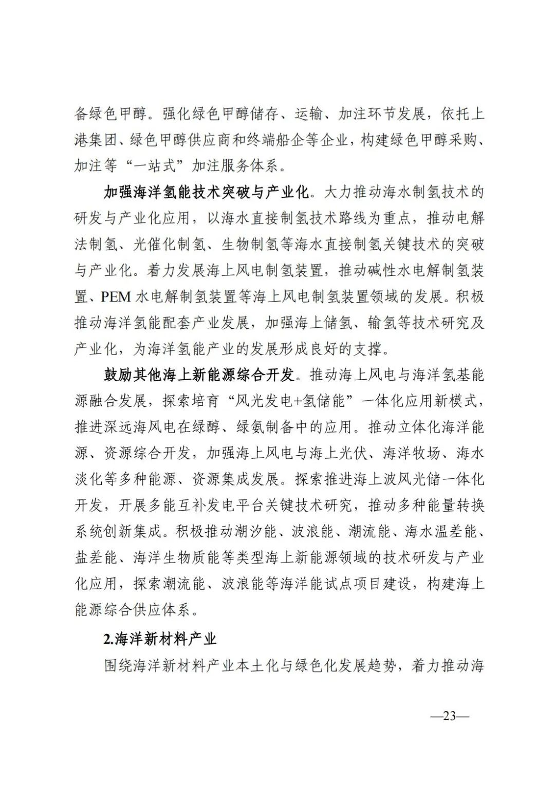 提升城市绿色化发展的国际竞争力,大力发展海上风电、海上光伏、绿色甲醇及海洋氢能等海洋新能源,积极探索海洋综合开发利用模式。