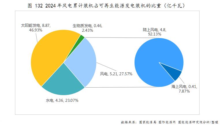据《中国能源数据报告(2025)》数据,2024年,全国风电新增装机容量7982万千瓦,同比增长6%,其中,陆上风电7579万千瓦,海上风电404万千瓦。