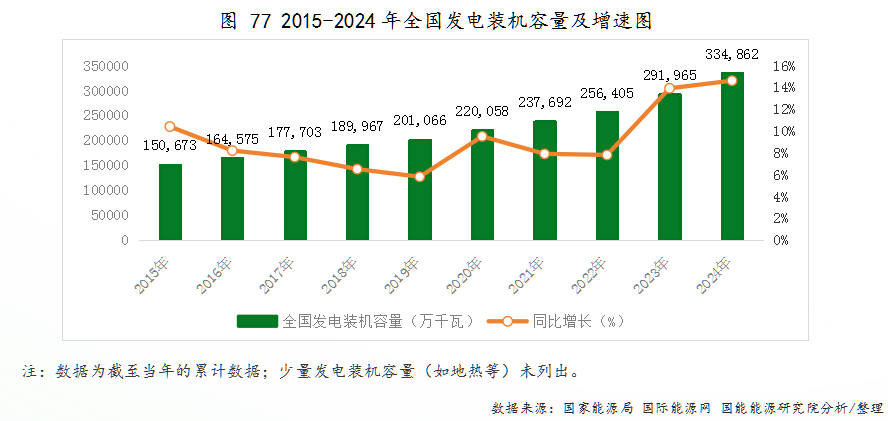 近年来,我国电力工业快速发展,发电装机容量在2013年突破12亿千瓦,成为世界上发电装机容量最大的国家,并在2019年首次突破20亿千瓦。2024年发电装机规模再创历史新高,尤其是可再生能源领域风电和太阳能的发电装机容量迅猛增长。