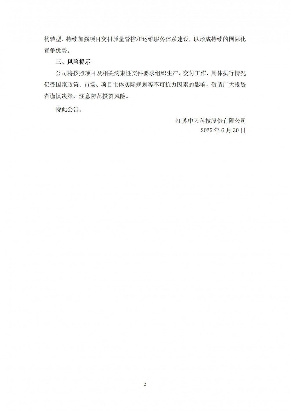 7月1日,江苏中天科技股份有限公司发布关于全资子公司中标海洋系列项目的公告。