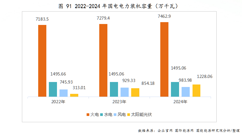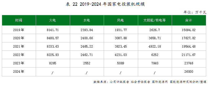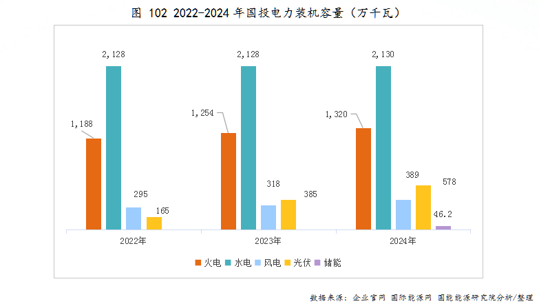截至2024年底,国投电力已投产控股装机容量4463.47万千瓦,其中,水电2130.45万千瓦、占比47.73% ;火电1320.08万千瓦(含垃圾发电)、占比29.58% ;风电388.85万千瓦、占比8.71%;光伏577.89万千瓦、占比12.95%;储能46.2万千瓦、占比1.04%。2024年,公司新增装机368.71万千瓦,其中水电2.45万千瓦、火电66万千瓦、风电70.6万千瓦、光伏192.56万千瓦、储能37.1万千瓦。