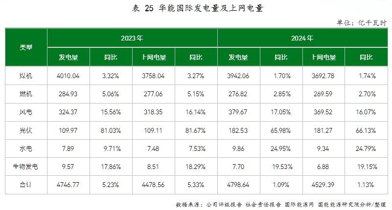 2024年,华能国际发电量4798.64亿千瓦时,同比增长1.09%。