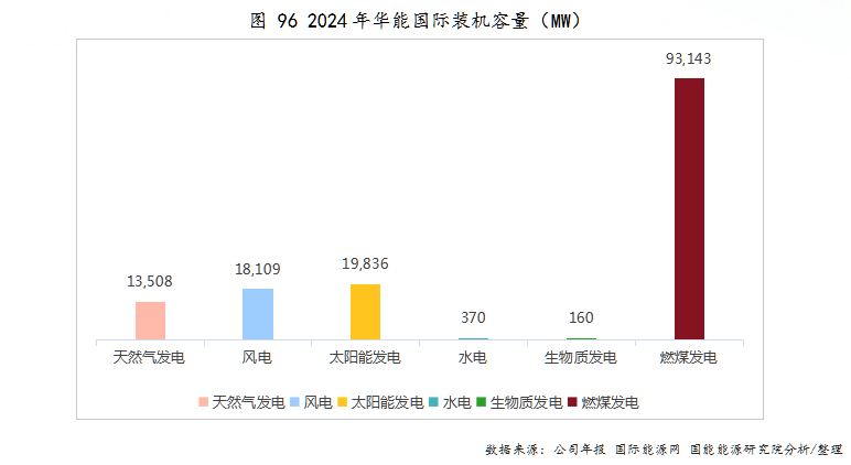截至2024年底,华能国际可控发电装机容量145125MW,其中天然气发电机组装机容量为13508兆瓦,风力发电机组装机容量为18109兆瓦,太阳能发电机组装机容量为19836兆瓦,水力发电机组装机容量为370兆瓦,生物质发电机组装机容量为160兆瓦,燃煤发电机组装机容量为93143兆瓦。