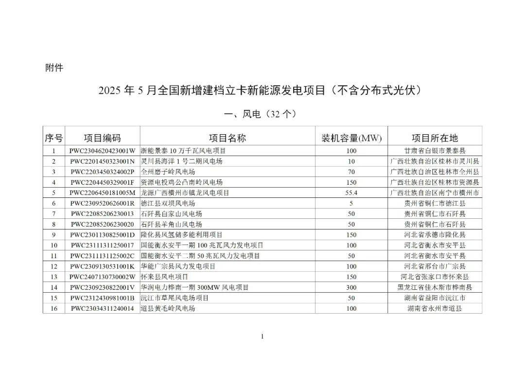 附件:2025年5月全国新增建档立卡新能源发电项目(不含分布式光伏)