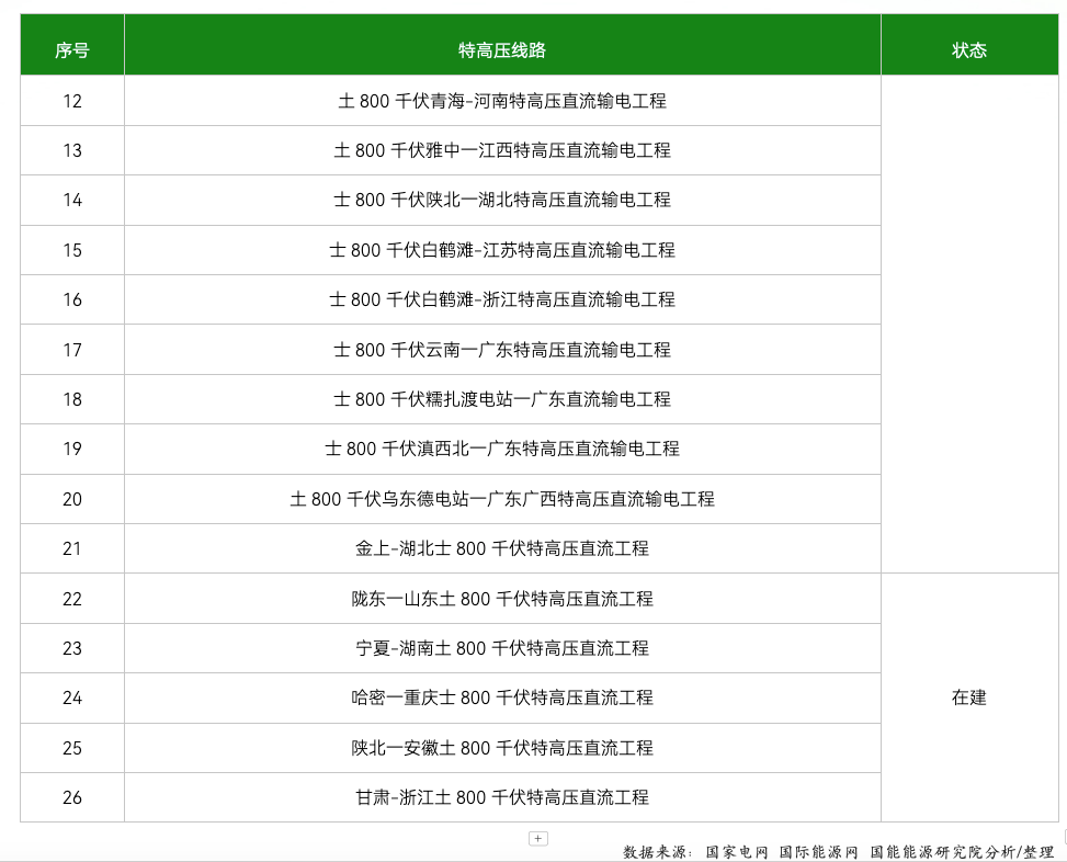 近年来,随着特高压建设的推进,跨省跨区输电能力持续提升。截至目前,国家电网已累计建成43项特高压工程,其中包括22条特高压交流线路和21条特高压直流线路。目前国家电网在建8项特高压工程,其中包括3条特高压交流线路和5条特高压直流线路。“西电东送”“北电南供”规模不断扩大。