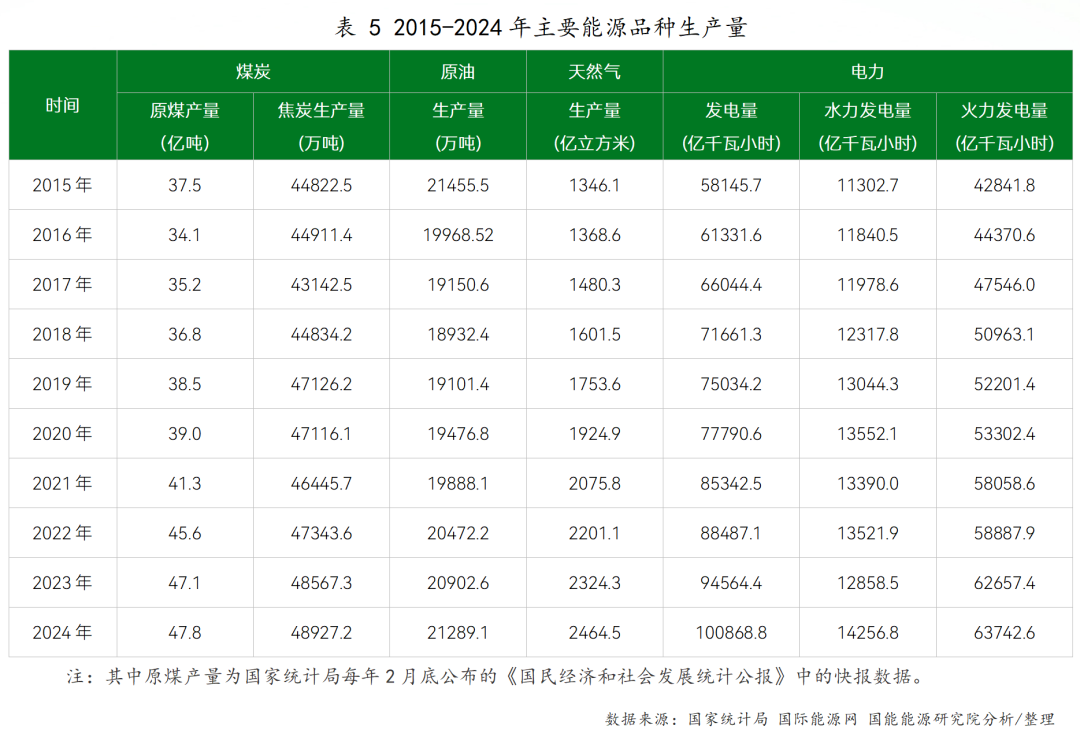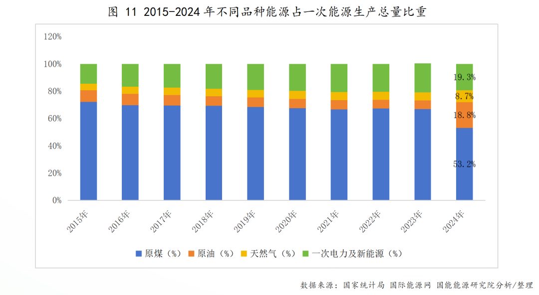 在能源生产及结构方面,据国家统计局发布的《2024年国民经济和社会发展统计公报》显示,2024年一次能源生产总量49.8亿吨标准煤,比上年增长4.6%。