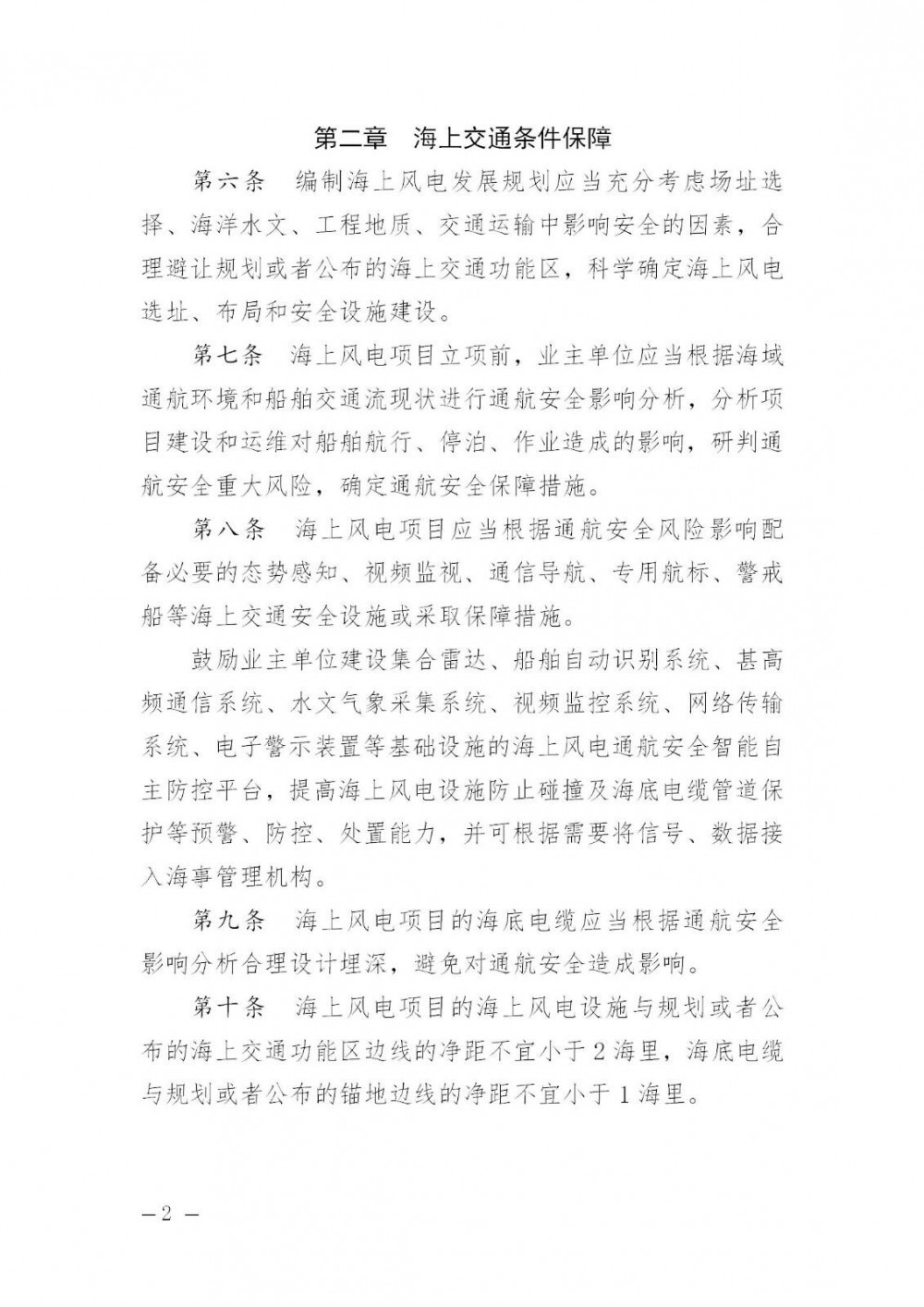 海上风电项目的海底电缆应当根据通航安全影响分析合理设计埋深,避免对通航安全造成影响。海上风电项目的海上风电设施与规划或者公布的海上交通功能区边线的净距不宜小于2海里,海底电缆与规划或者公布的锚地边线的净距不宜小于1海里。