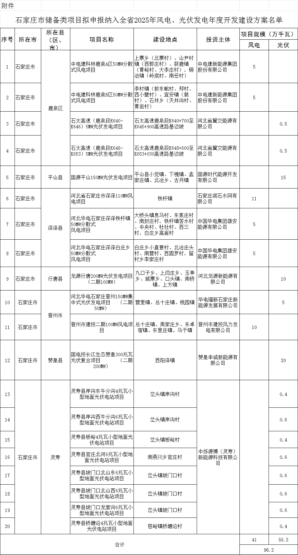 石家庄市发展和改革委员会石家庄市拟申请纳入全省2025年风电、光伏发电年度开发建设方案项目名单公示