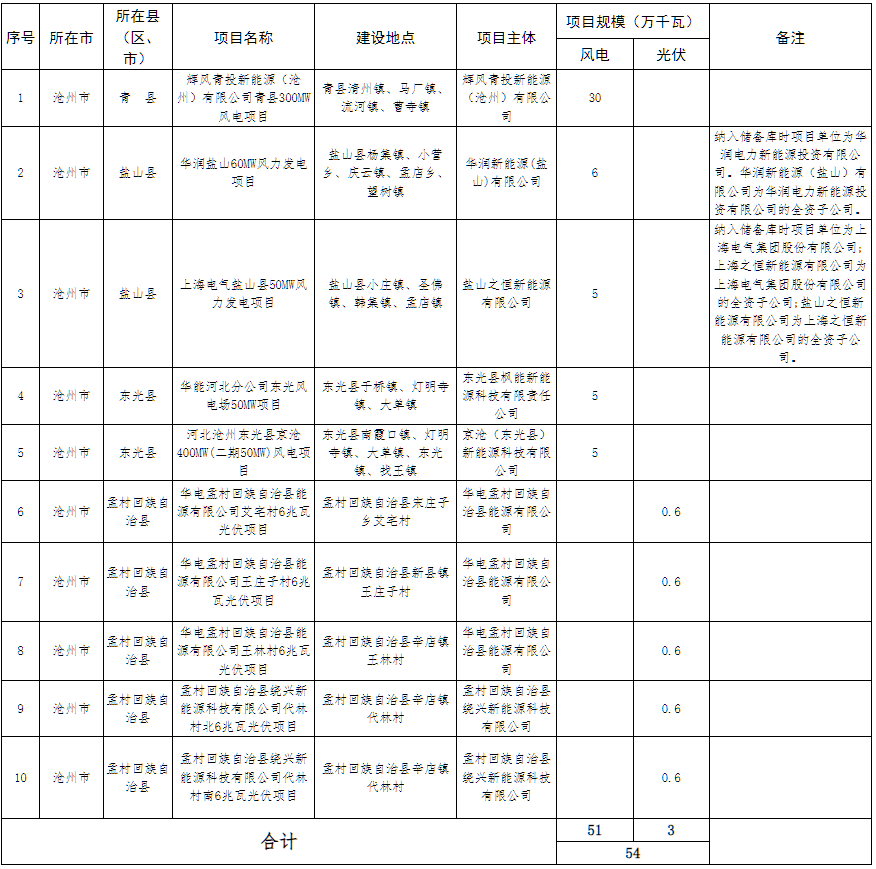 沧州市拟申请纳入全省2025年风电、光伏发电年度开发建设方案项目名单公示