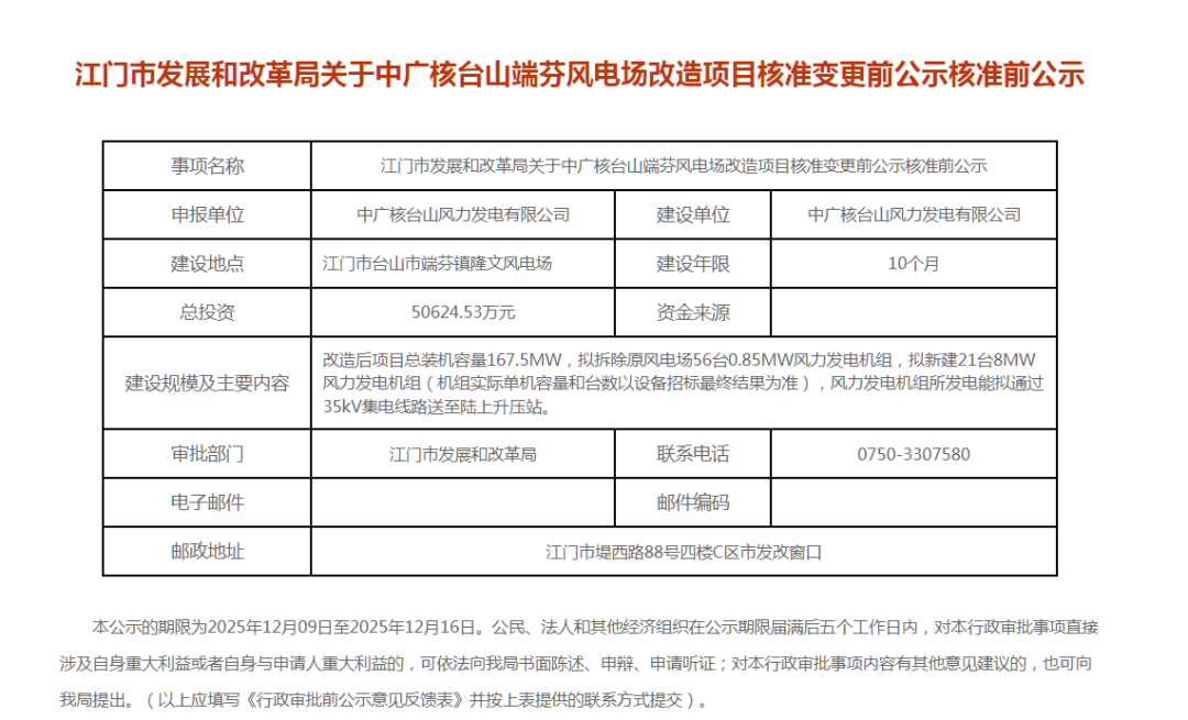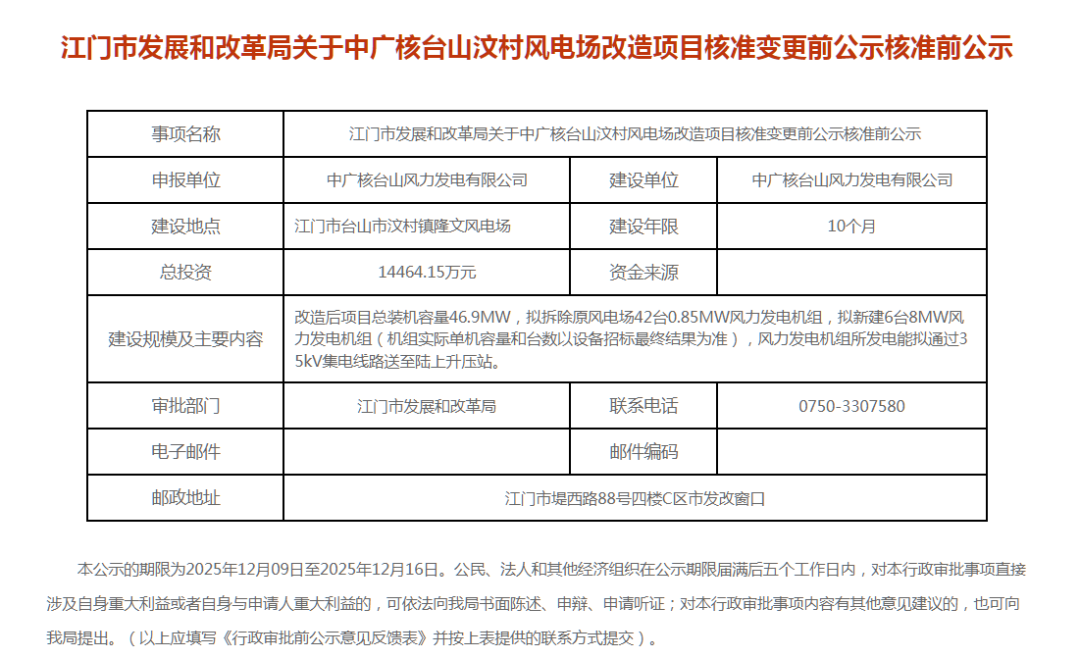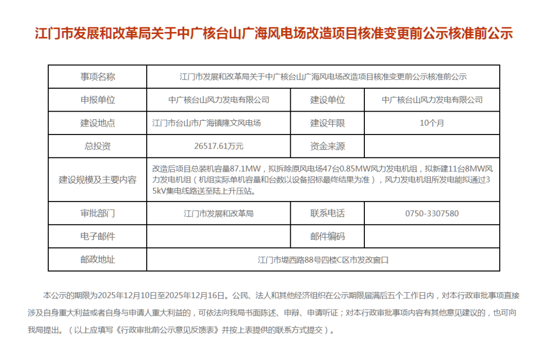 电力家获悉,近日,广东省投资项目在线审批监管平台发布3个风电场改造项目核准变更前公示。