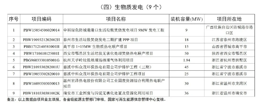 生物质发电项目9个,规模共计229.94MW。
