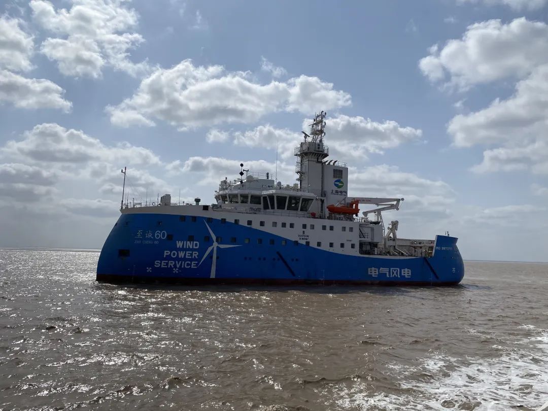 据悉,至臻100船身总长93.4米,型宽18米,型深7.6米,而至诚60则总长72.76米,型宽17.5米,型深7米。两艘船均已入籍中国船级社(CCS)。这两艘运维母船装备了先进的DP2动力定位系统,同时还配备了可 升降波浪补偿栈桥、折臂式海工起重机、运维工作子艇、登乘平台和铝合金直升机平台,确保在恶劣海况下也能安全高效地进行人员和设备的转运,以及风场的维护作业。