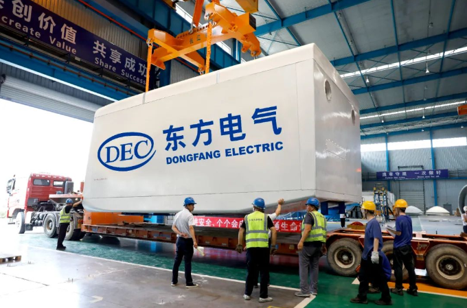 6月27日下午,华源电力小蒜沟五期风储一体化项目首台机组在东方天津风电总装车间顺利下线并装车发运。