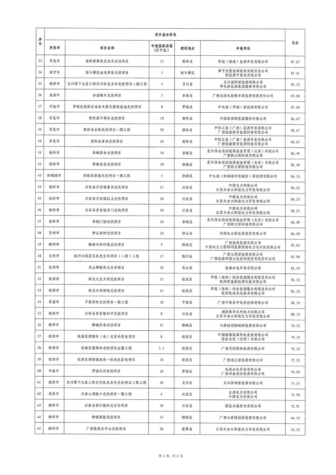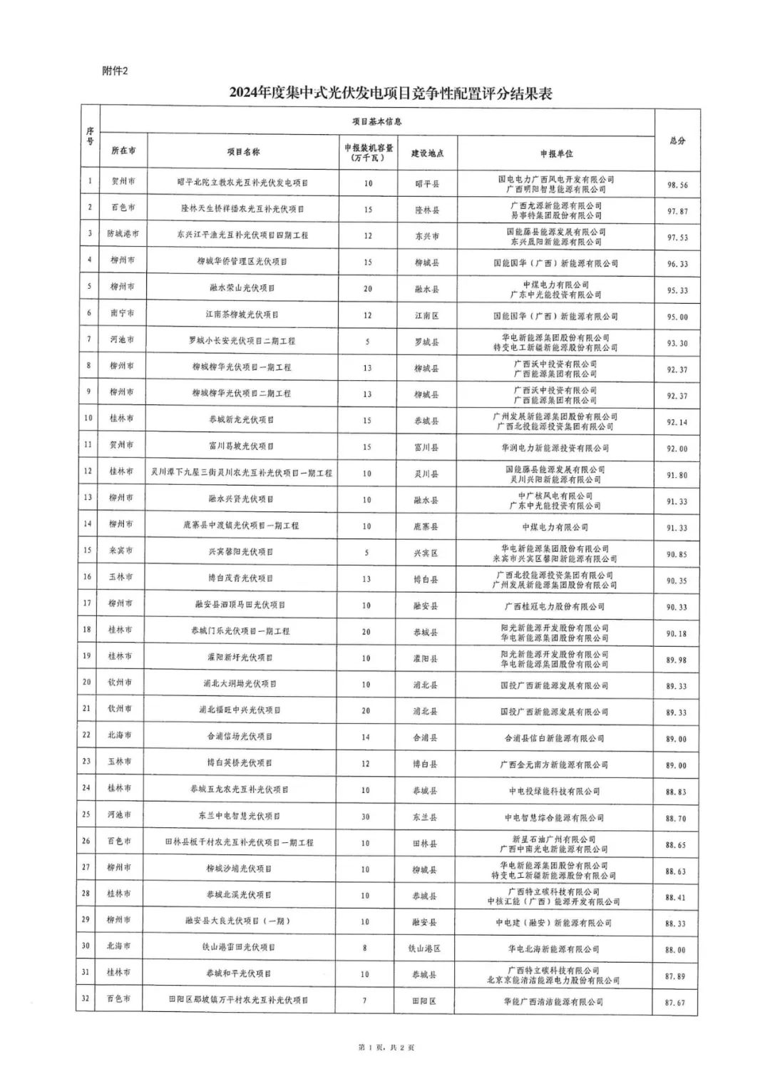 2.2024年广西集中式光伏发电项目竞争性配置评分结果表
