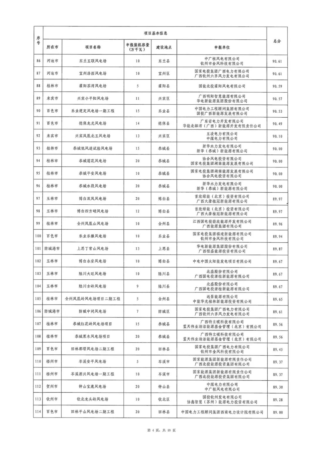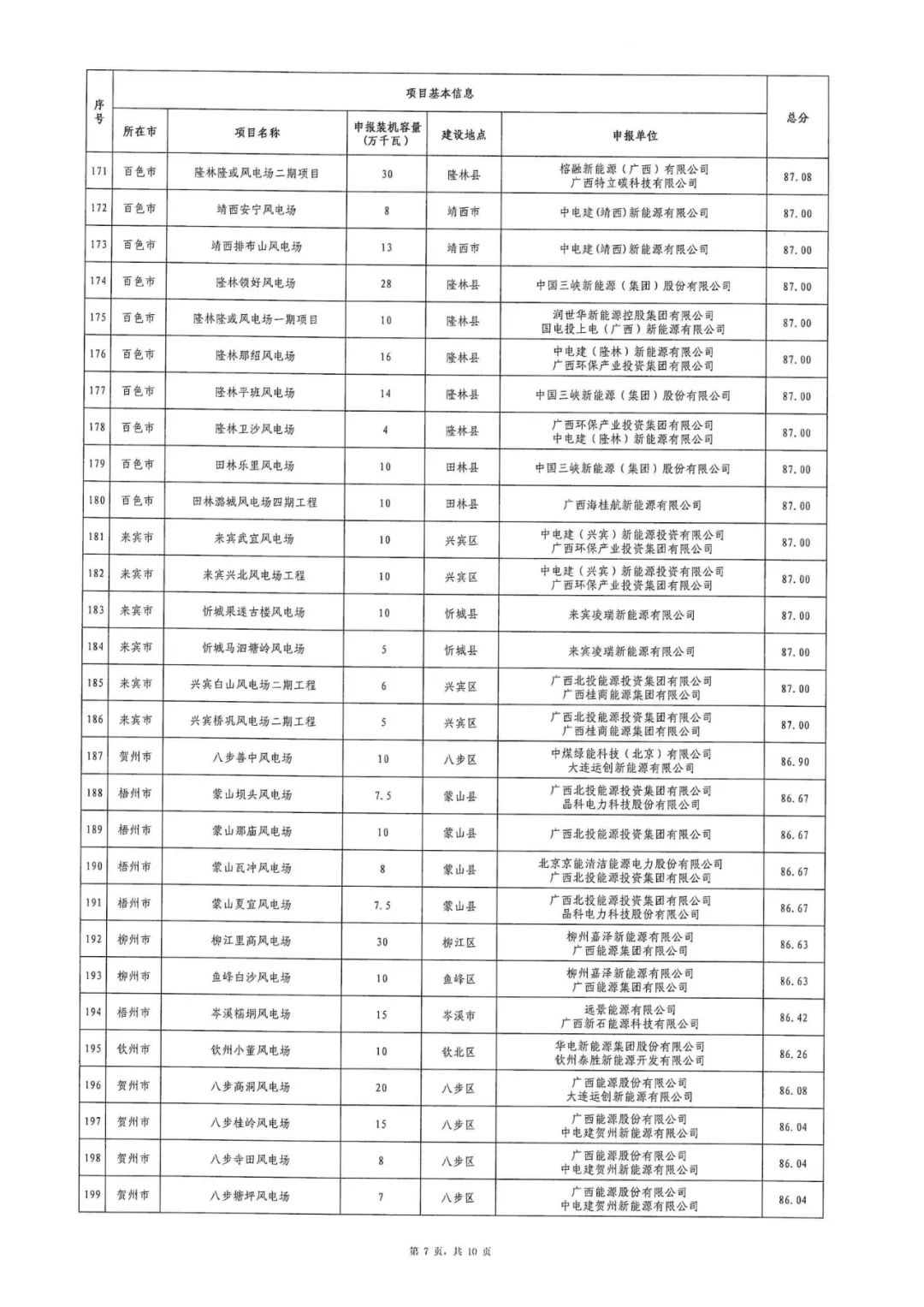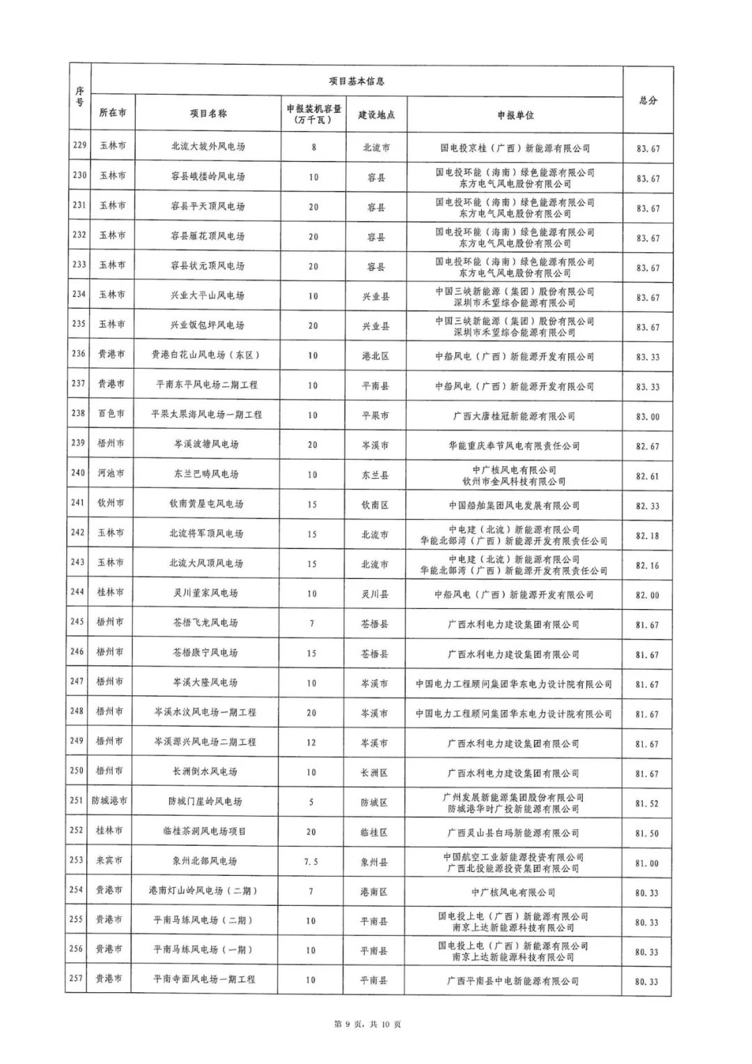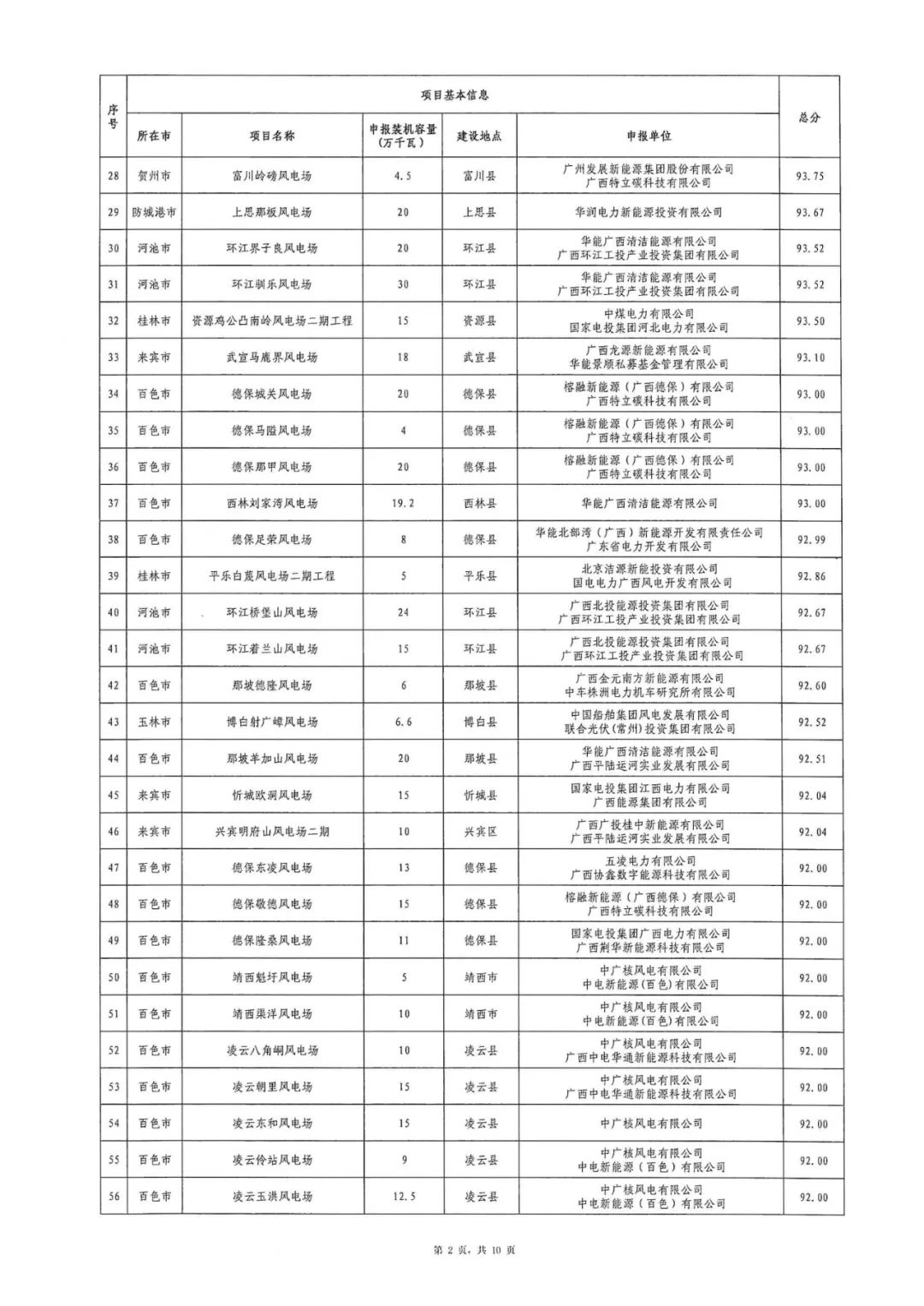 附件:1.2024年广西陆上风电项目竞争性配置评分结果表