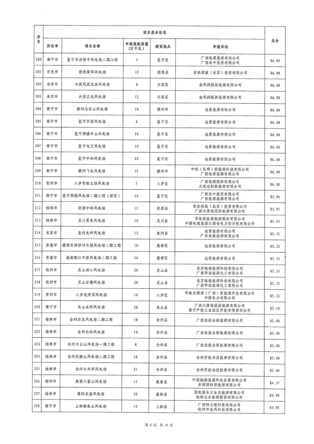 广西壮族自治区能源局关于2024年广西陆上风电、集中式光伏发电项目竞争性配置评分结果的公示