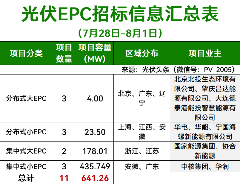光伏头条根据7月28日至8月1日光伏EPC市场情况,精选展示最高价以及最低价项目。